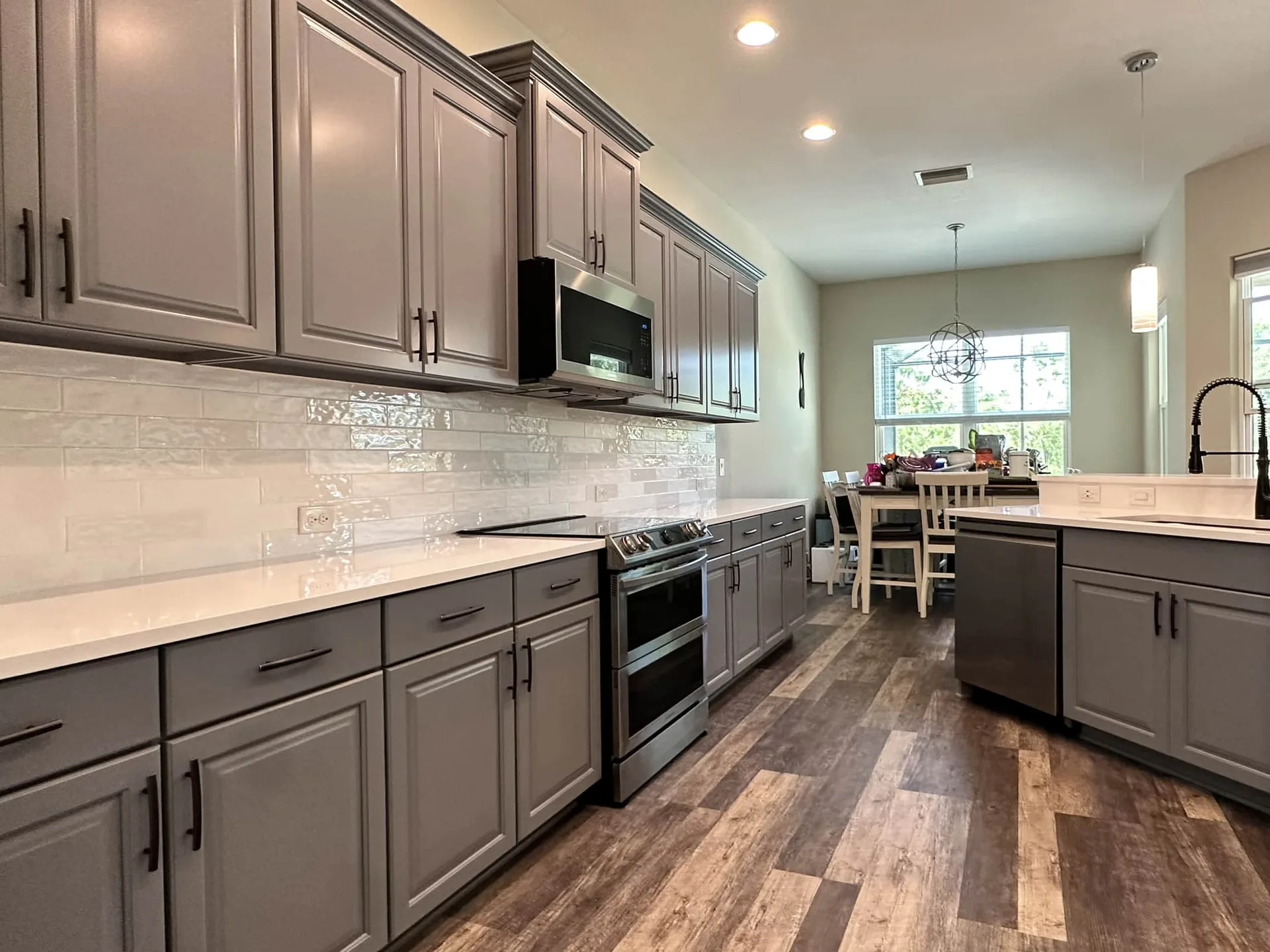 Cabinet painting Sarasota with spray-booth or offsite curing so your kitchen stays usable. Doors are mapped and labeled for a clean reinstall.